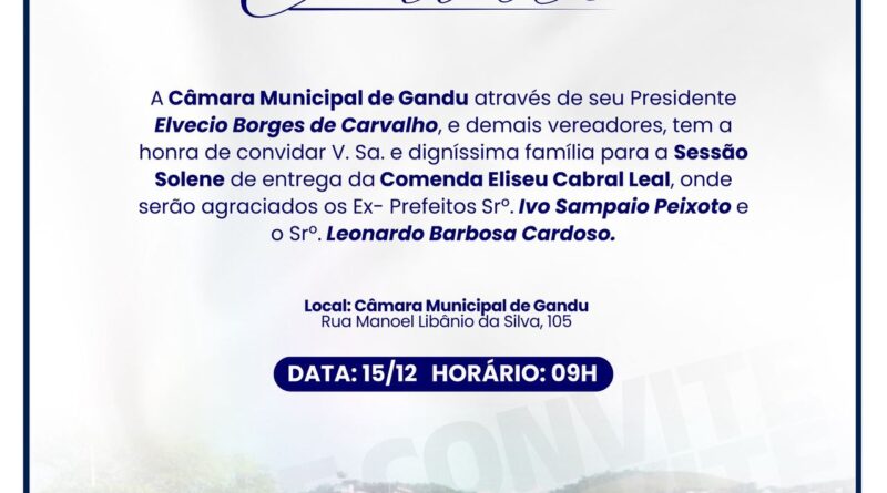 A Câmara de vereadores de Gandu, aprovou por unanimidade a Comenda Eliseu Leal para os ex-prefeitos Leonardo Cardoso (Avante) e