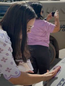Ainda durante a ação, veículos foram parados, adesivados com a marca da campanha e os motoristas abordados com informações sobre as formas de combate à violência contra a mulher. A prefeita Daiana Santana, esteve presente e participou ativamente da iniciativa.