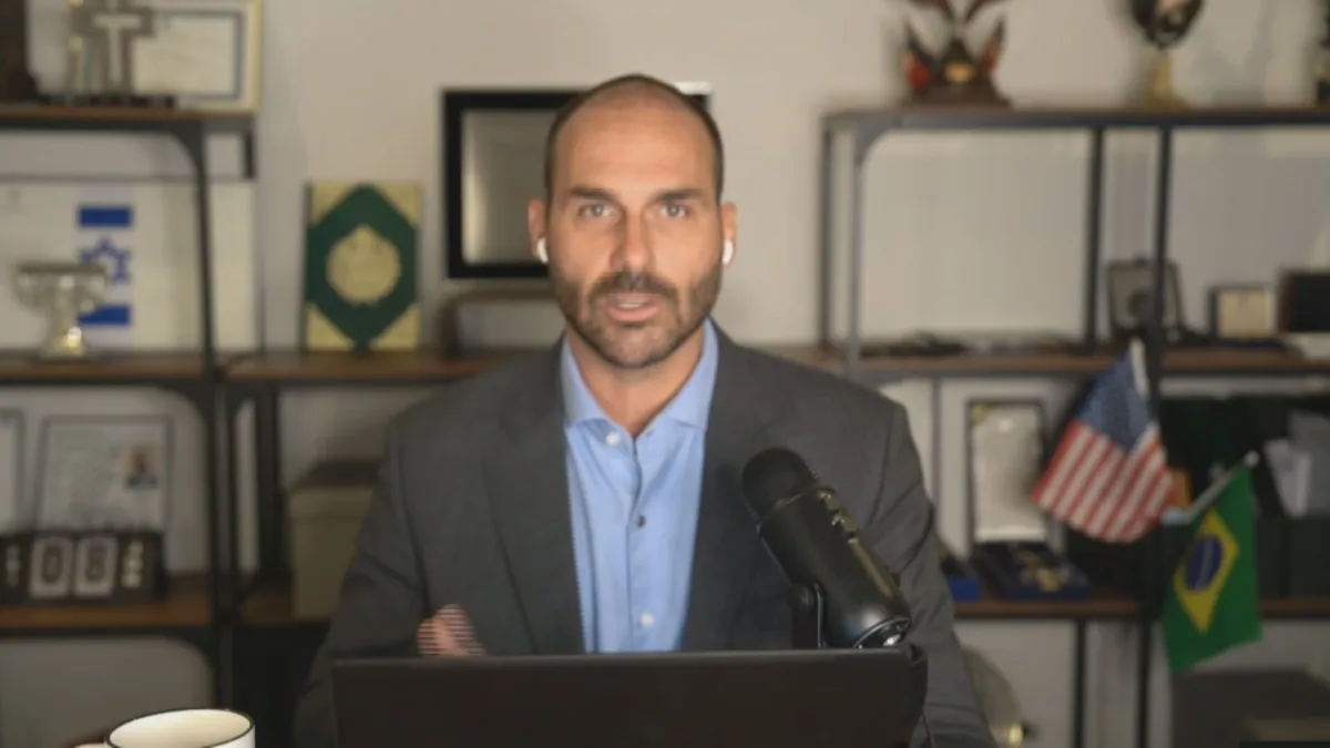 O deputado federal Eduardo Bolsonaro (PL-SP) pediu ao presidente da Câmara, Hugo Motta (Republicanos-PB), para exercer o mandato dos Estados Unidos. No ofício encaminhado a Motta, o filho do ex-presidente Jair Bolsonaro (PL) alega que tem realizado “diplomacia parlamentar” no país. Além disso, citou a pandemia de covid-19 como um “precedente claro” de exercício remoto do mandato.