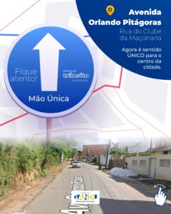 As Avenidas Nestor Lopes (Rua dos Correios) e Orlando Pitágoras (Rua do Clube da Maçonaria), que antes eram vias de mão dupla, passam agora a ser mão única.